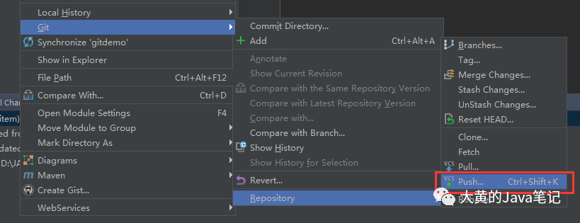 IDEA中对操作做了一定的简化,Commit和Push可以在一步中完成。