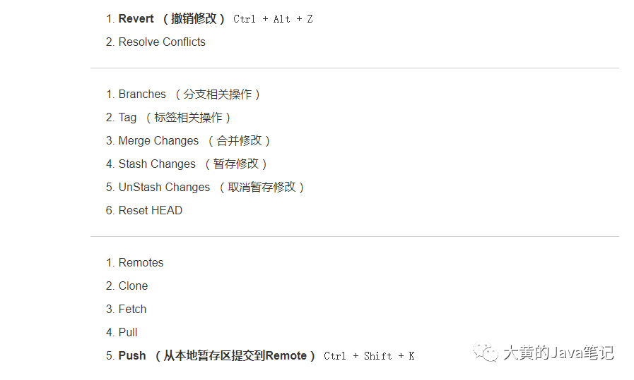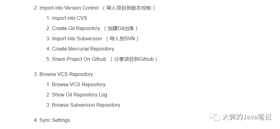 附上VCS导航项及其每一子项的拆解介绍,其中,加粗部分的选项是博主认为比较重要的。