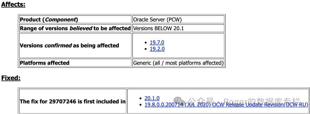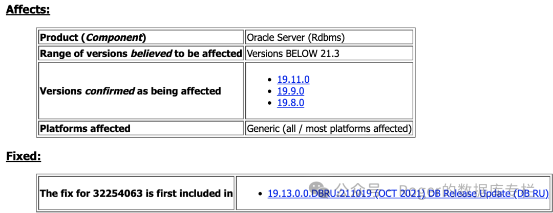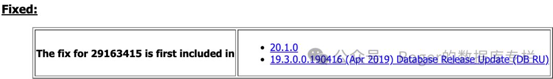 除了打补丁之外,Oracle没有提供其他的方案,另外可以看到在19.3以及新版本中已经fix了。