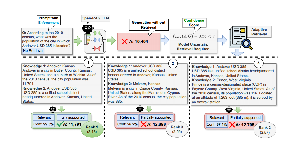 Open-RAG 将传统的密集型大语言模型(LLM)转变为参数高效的稀疏专家混合(MoE)模型,使其能够处理复杂的推理任务,包括单跳和多跳查询。通过动态选择相关专家,Open-RAG 能有效应对看似相关但实际误导的干扰因素。此外,Open-RAG 引入了一种混合自适应检索方法,帮助模型在性能提升与推理速度之间取得平衡。该框架在复杂推理任务中表现出显著的性能改进。