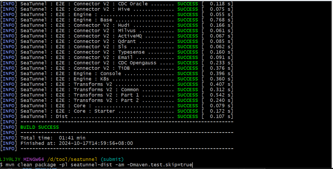 最终,我通过 Git 提交代码至自己的仓库,并向 SeaTunnel 开源项目发起 Pull Request,随后关注流水线运行情况以及代码 review 的反馈,直到社区 PMC 合并代码。