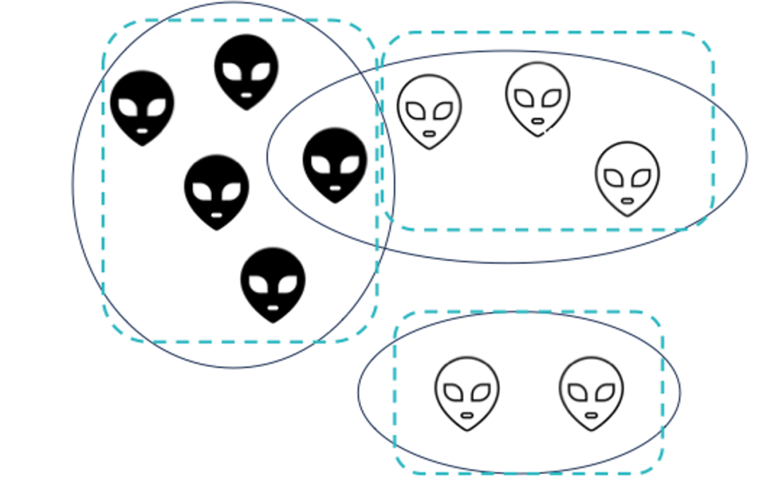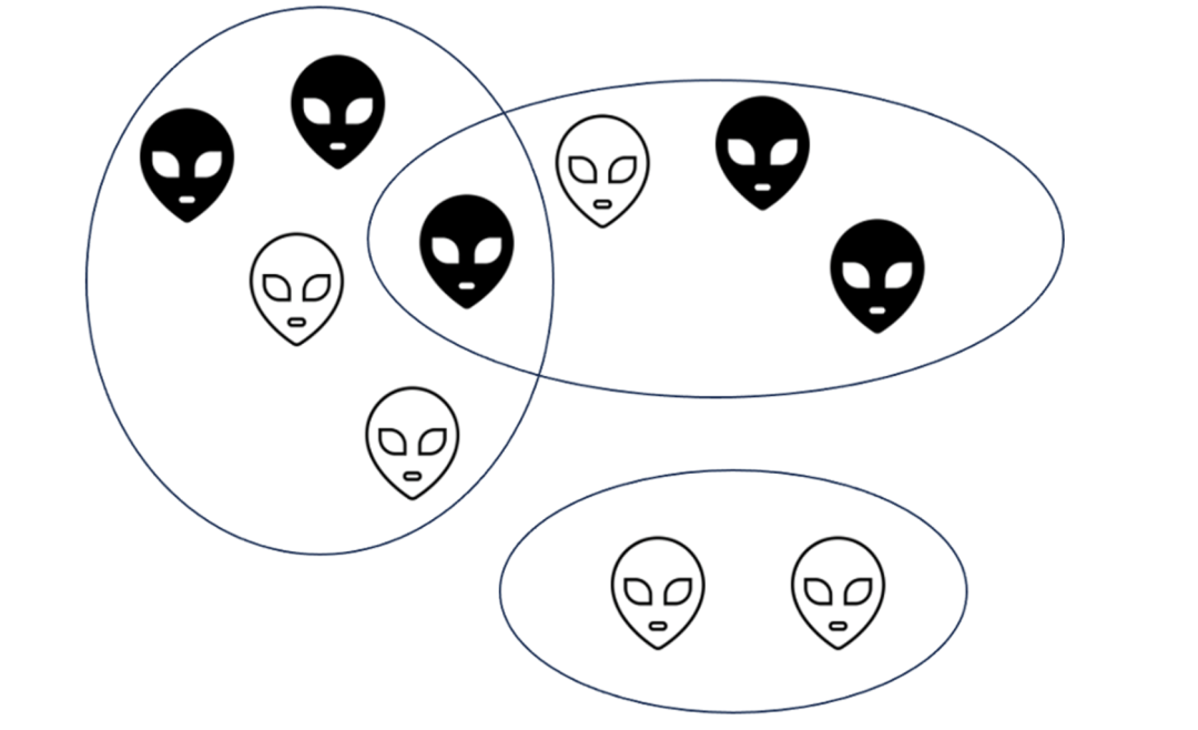 干涉效应,指在实验中由于人群互动对实验结果产生影响的因素。例如,假设有3个群聊组,每个组有若干个用户。如果想测试一个和群聊功能相关的策略并检验该策略对用户对话数的提升效果,经典的A/B测试会按照用户粒度进行随机的策略分配。每个群聊组中,既有进入实验组的用户(如下图黑色填色图标所示),也有进入对照组的用户(如下图未填色图标所示),他们分散在不同的群聊组中。如果该测试功能能够显著提升实验组用户在群聊中的活跃程度,那么对照组用户即使没有受到测试功能的直接影响,也因为同在群聊中的其他实验组好友群聊活跃度的提升,带动了整个群聊组的活跃氛围,从而间接拉动了对照组用户的活跃度。两组间活跃度差异被低估,策略的真实效应也被低估。这种在同一社交环境下对照组用户与实验组用户互动,导致实验组的策略溢出渗透(spill-over)到对照组的情况被称为直接干涉。还有一类干涉,是指实验组和对照组的互动来自他们对于共有资源的竞争(如双边市场中不同买家在竞争商家提供的有限资源),而非直接接触。这一类的干涉也被称为间接干涉。此时,真实的策略效应往往被高估。无论是直接干涉效应,还是间接干涉效应,都源于人和人之间存在的互动。此时,单一个体的实验结果不再由该个体本身的策略状态所决定,而是同时受到其他人策略状态的影响。这是和普通AB实验最大的差别。普通AB实验会假设结果的差异完全来自于自身策略的差异,对于单一个体而言,她/他只存在对应于0-1策略的两种潜在结果(potential outcome),我们可以通过策略的随机分配,准确地观察到这两种潜在结果;而在干涉效应存在的情况下,她/他的潜在结果还受制于其他人的策略状态,因而会呈现出非常多的可能性,我们观察到的只会是当中很小的一部分,其间,对于未观察到的潜在结果的插值便会引入偏差。解决上述问题的思路大致有两种,一是实验设计,二是统计调整。/ 基于社交网络的聚类分流