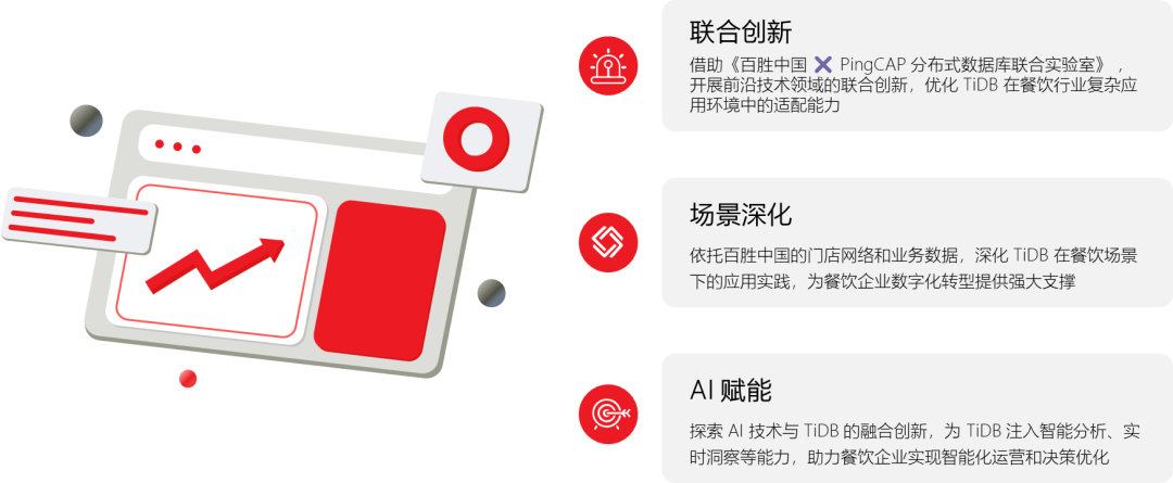 联合创新:百胜中国与 PingCAP 成立联合实验室,共同优化 TiDB,提升其在餐饮业的应用能力,助力业务创新。