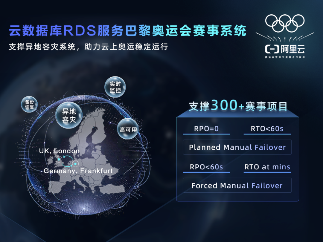 阿里云云数据库RDS为巴黎奥运会提供的跨地域灾备系统,体现了云数据库RDS在高可用容灾场景下的产品能力和技术先进性,并在奥运赛前演练和奥运举办过程中得到了实战检验,确保了巴黎奥运会赛事系统的平稳运行,也为阿里云在大规模、高要求的应用场景下证明了其技术实力与可靠性。