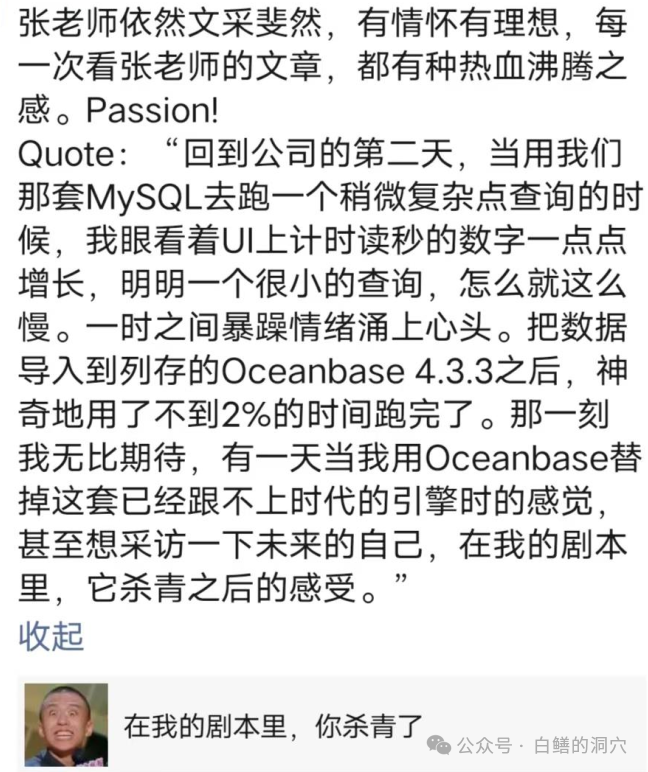 实际虽然如此,不过对于产品年度发布会这样的重大活动而言,我的想法有点过于实际,不太适合年度发布会这样的场景。国产数据库现在很苦逼,在内,大量的同行在内卷,除了价格战之外,功能,性能,案例等都在PK;在外,Oracle这个庞然大物还在加速狂奔,不断引领新方向,推出新功能。Oracle干了啥,我们不马上跟上去哪行?哪怕技术上无法跟得上,概念上也不能落后太多。这可能是广大国产数据库厂商共有的苦衷。