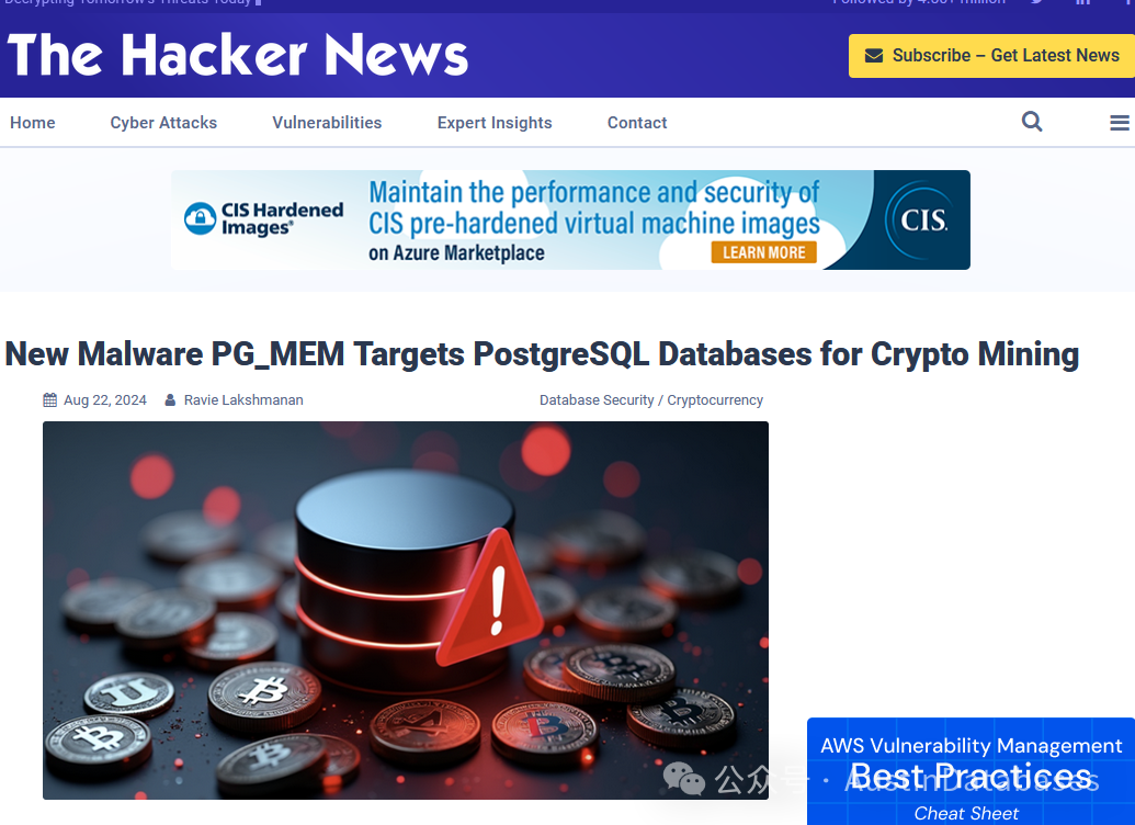 网络安全研究人员解开了一种名为PG_MEM的新型恶意软件,设计用于在暴力破解方式进入PostgreSQL数据库实例后进行加密货币挖矿。