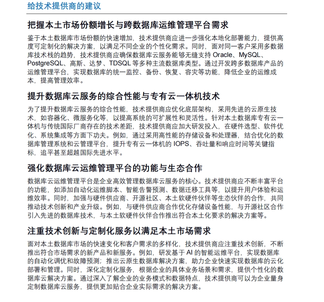 IDC认为,数据库云服务包括数据库专有云一体机和数据库云运维管理平台,它主要由数据库的生态供应商提供,在最终用户私有化环境下,利用容器化等云原生技术搭建面向数据库的私有化云平台,为客户提供跨数据库、跨平台的数据库一体化私有云服务。