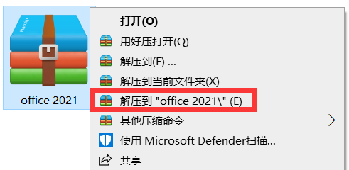 1.解压安装包“office 2021”