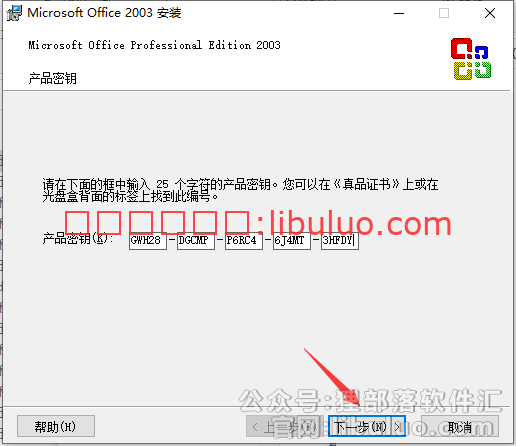 第三步:输入产品密钥:GWH28-DGCMP-P6RC4-6J4MT-3HFDY 点击下一步