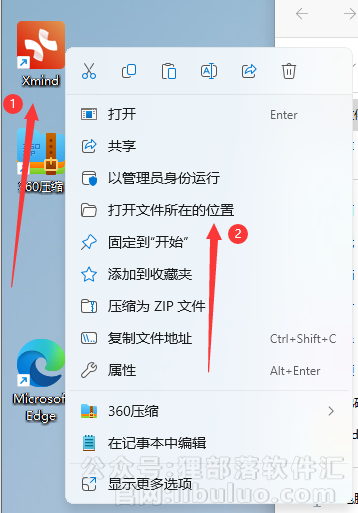 6.鼠标右击桌面【Xmind】图标选择【打开文件所在的位置】。