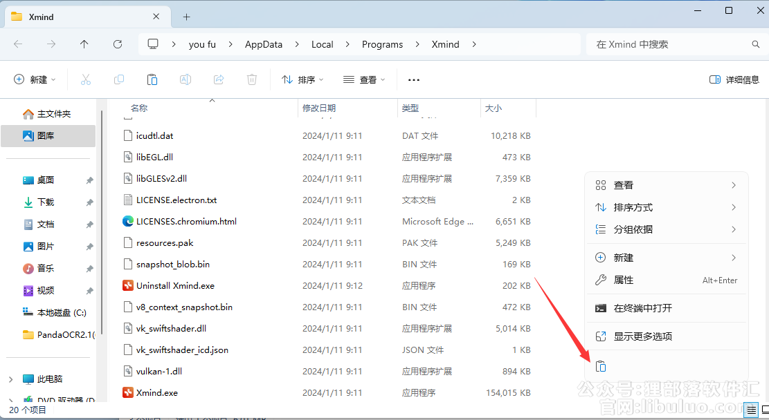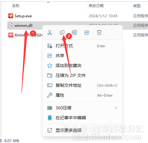包解压后的【Xmind2024】文件夹,鼠标右击【winmm.dll】选择【复制】。