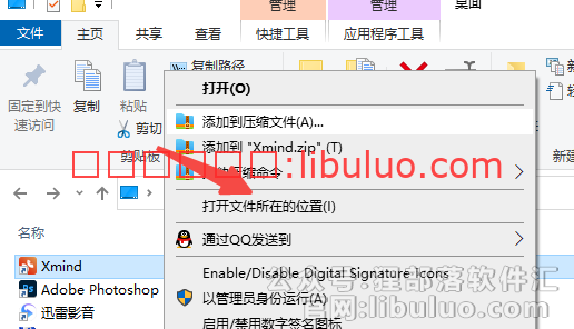 3.右键桌面的xmind图标,打开文件位置,把winmm.dll复制到打开的安装路径中去