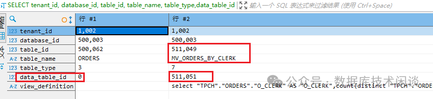 WHERE tenant_id=1002 and table_name in ('mv_orders_by_clerk','orders');