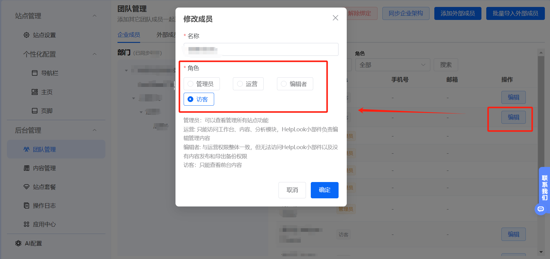 HelpLook还能轻松实现与钉钉、企微等组织架构的无缝集成。企业可以同步组织架构信息至知识库后台,为不同部门、不同角色的成员设置不同的管理权限。这种基于部门、角色的权限分配方式既保证了内容的编辑与管理效率,又确保了信息的安全可控。