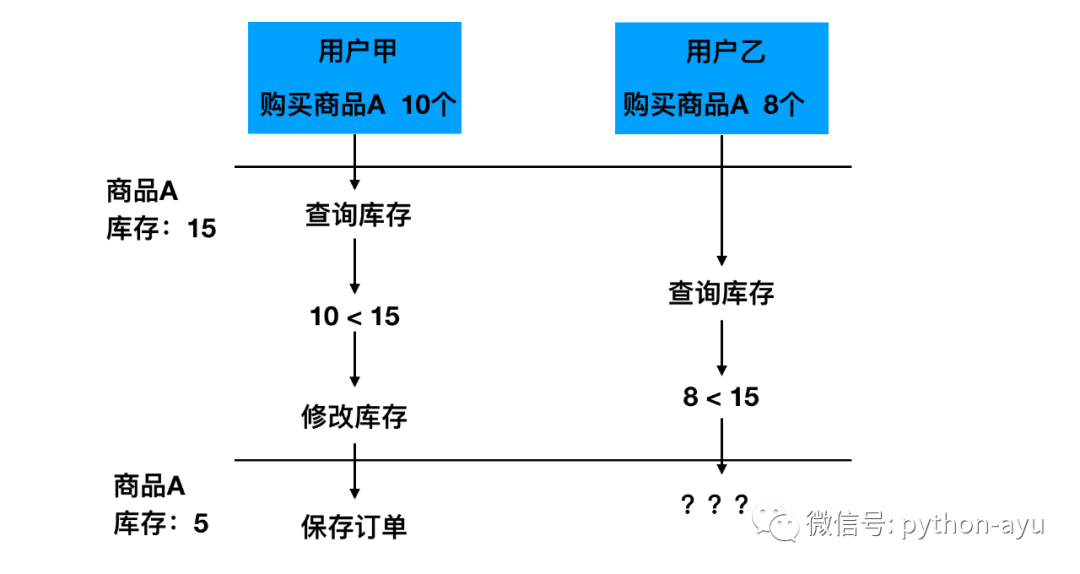 首先库存大于购买量,然后更新库存和销量时原始库存没变。