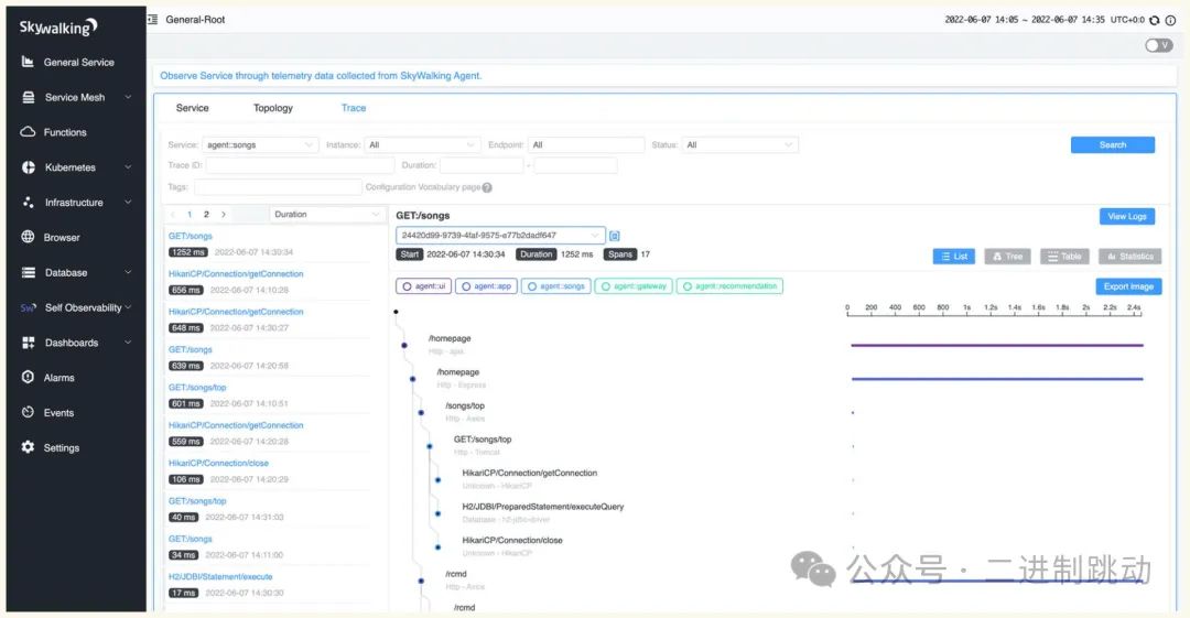 常见的开源 Metrics 有 Zabbix、Nagios、Prometheus、InfluxDb、OpenFalcon,主要做各种量化指标汇总统计,比如监控系统的容量剩余、每秒请求量、平均响应速度、某个时段请求量多少。常见的开源链路跟踪有 Jaeger、Zipkin、Pinpoint、Skywalking,主要是通过分析每次请求链路监控分析的系统,我么可以通过 TraceID 查找一次请求的依赖及调用链路,分析故障点和传导过程的耗时。