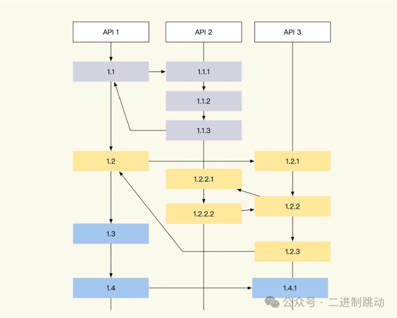 那么 RPCID 方式又是怎样的呢?RPCID 也被称为层级计数器,我在微博和好未来时都曾使用过。为了方便理解,我们来看下面这张图。