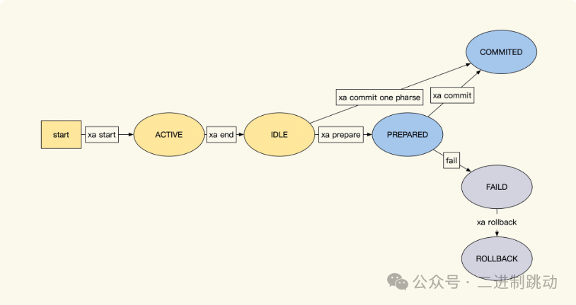 在进入案例之前,你可以先了解一下 MySQL 中,所有关 XA 协议的指令集,以方便接下来的学习: