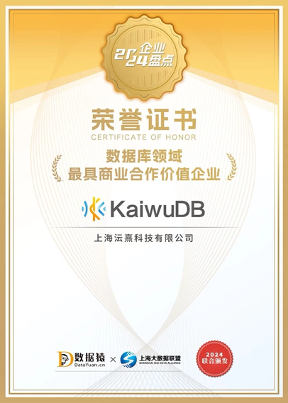 1.浪潮KaiwuDB 获评“2024最具商业合作价值数据库企业”