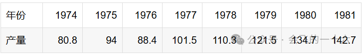 本题第一问建立出布的年产量预测模型为。本体第二问建立布的直线指数预测模型为。本题第三问从标准差的角度考虑,选择 的二次指数平滑模型。本题第四问选用 的二次指数平滑模型作为最优化的模型得到1982年和1985年的产量预测值为153 亿米和183.03亿米 。