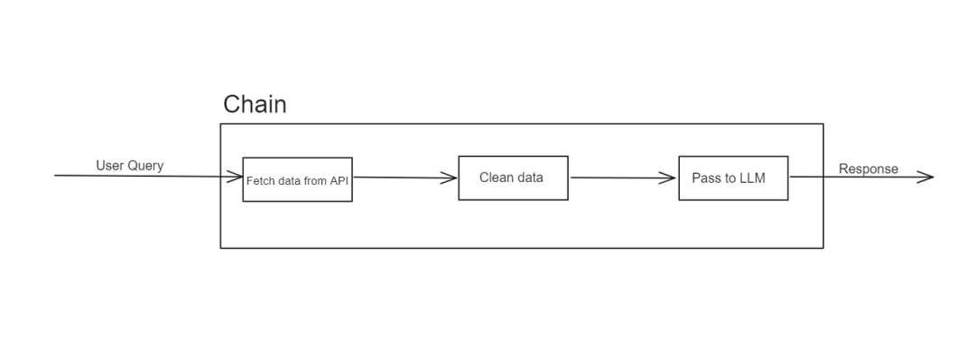 例如,一个链可以首先从 API 检索数据,然后对数据进行一系列转换,最后将转换后的数据输入 LLM 生成响应。这种模块化设计便于设计、测试和复用工作流程的各个组件。