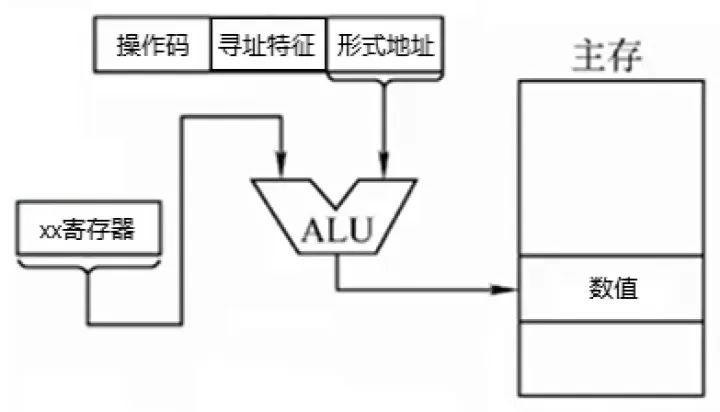 变址寻址会在形式地址中给出100,IX寄存器(index register)会给出5,然后ALU计算出105。