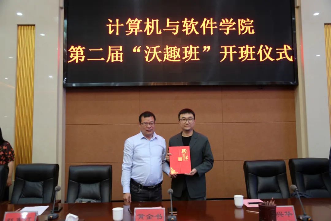 在启动仪式上,南阳理工学院副校长黄金书表示,学校将始终坚持应用型办学战略,注重教育创新与改革,学校也将继续深化合作,帮助学生提升实践能力,推动教育与行业需求紧密结合。黄金书还为沃趣科技合伙人&CTO魏兴华颁发了客座教授证书。