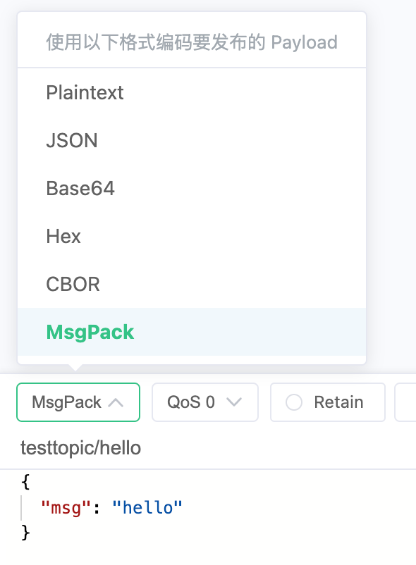 这一增强功能提升了 MQTTX 作为测试工具的多功能性,特别是在消息大小效率至关重要的物联网场景中。无论您是在测试已经使用 Message Pack 的系统,还是在探索更高效的 MQTT 通信消息格式,MQTTX 现在都提供了处理这种紧凑二进制格式的能力。