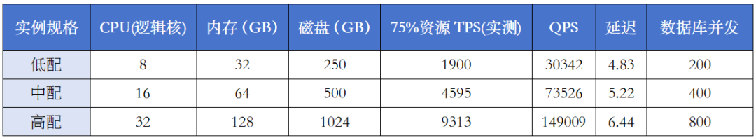 可以看到集中式数据库在中等规格配置下资源使用率达到75%时,所能达到的最大TPS在4595,延迟5ms,并发400。这是一个参考值,也就是上面提到的基本TPS超过5000需要拆分的一个依据。当然如果你的资源够大,这个值可以再大。不过最准确地,需要我们通过真实环境压力测试来验证我们的TPS值进行判断。
