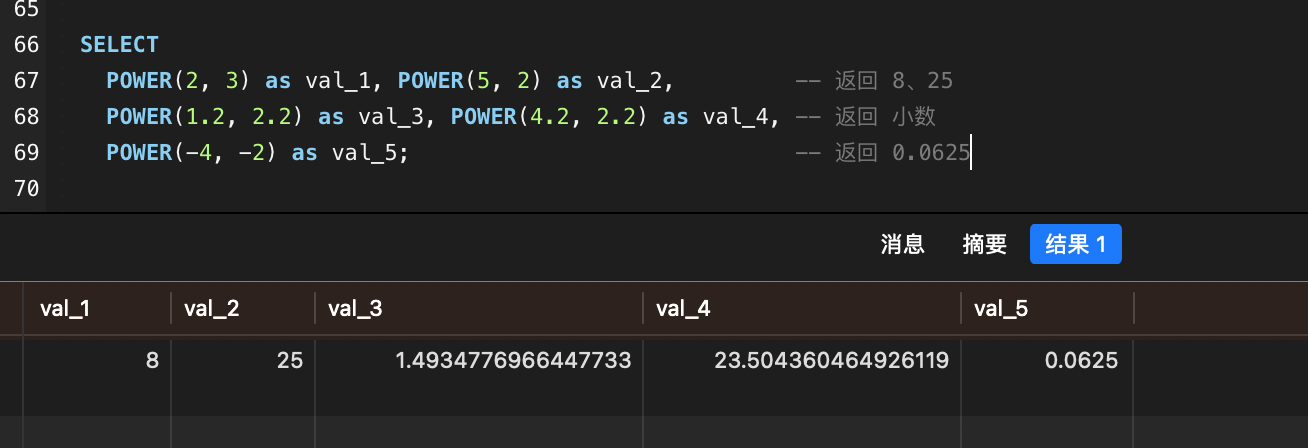 POWER(-4, -2) as val_5; -- 返回 0.0625