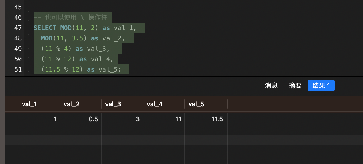 返回两数相除后的余数。数学概念上一个数被另一个数除后剩余的部分。