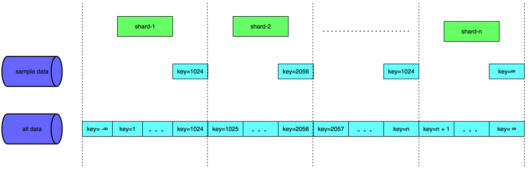 采样切片仅做一次查询,使用数据库sample函数进行采样,保障切片效率和大表迁移稳定性,解决Oracle临时表空间膨胀问题,提供表内并发写入能力,提高全量迁移效率。原理如下:
