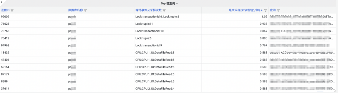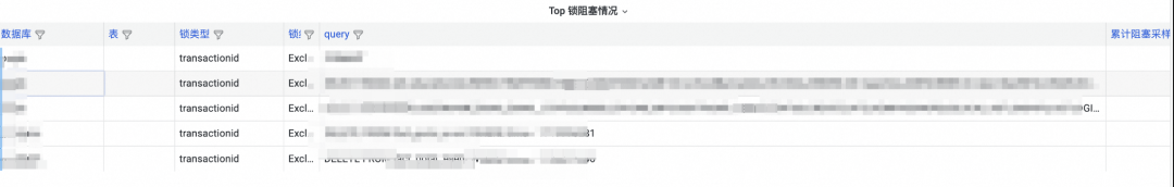 锁阻塞状况是诊断数据库事务瓶颈的关键指标,它为数据库管理员(DBA)提供了洞察当前事务处理性能并采取针对性解决措施的依据。正如所示图表中,该数据库目前存在数个transactionid 类型的锁,这暗示着事务之间发生了因行锁引起的冲突(如并发场景下多个事务尝试更新同一行数据)。
