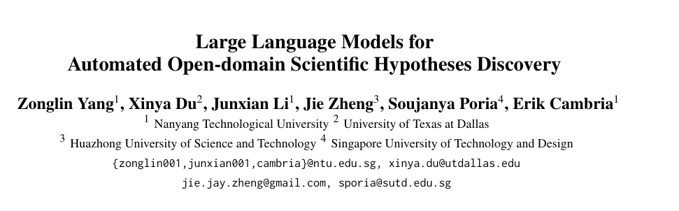 标题: Large Language Models for Automated Open-domain Scientific Hypotheses Discovery