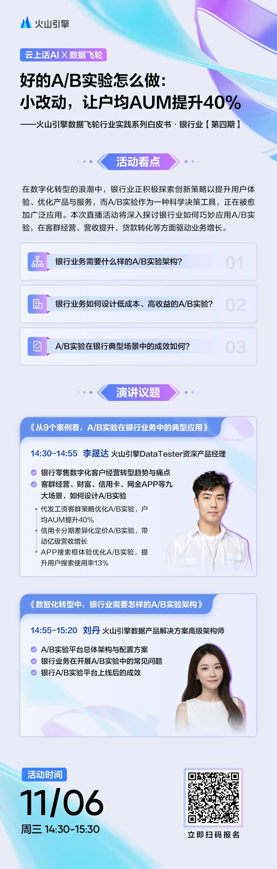 11月6日14:30,《火山引擎数据飞轮行业实践系列白皮书·银行【第4期】》将在线上发布,从多个角度为你揭秘: