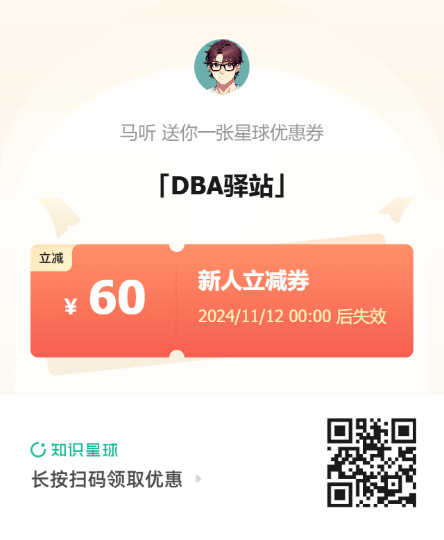 感兴趣的可以微信扫描下方二维码领取「DBA驿站」知识星球的优惠券: