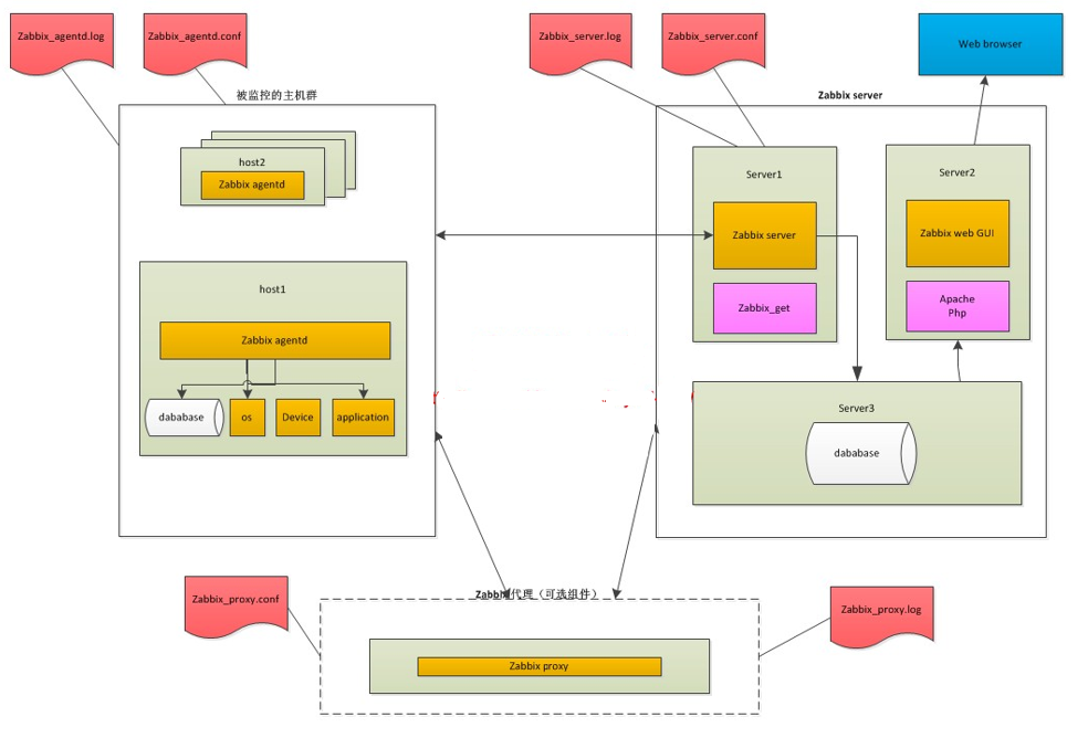zabbix由zabbix server与可选组件zabbix agent两部门组成。