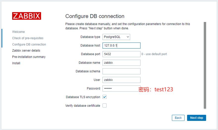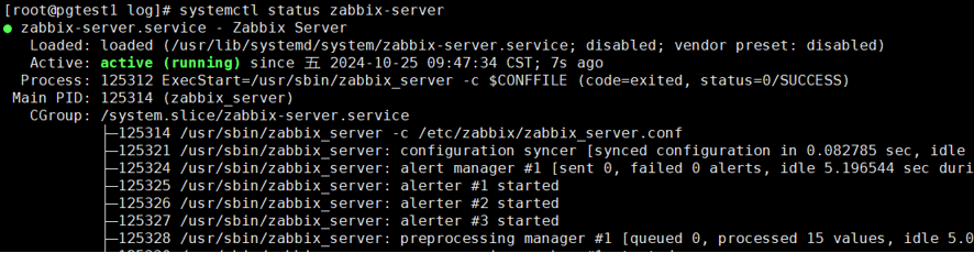 vim /etc/zabbix/zabbix_server.conf 将密码添加进去:test123
