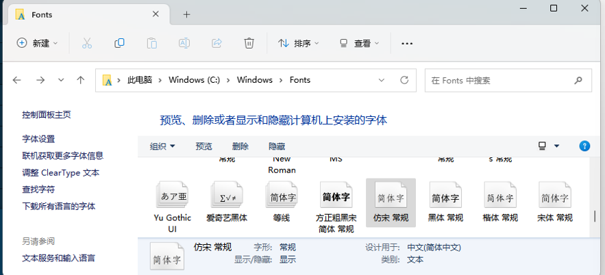 打开windows的字体目录C:\Windows\Fonts,将"仿宋 常规"复制过去: