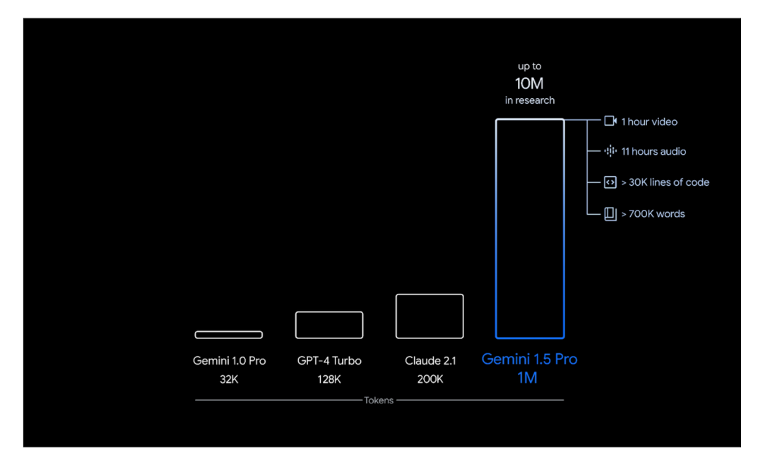 Gemini 1.5 的架构结合了 Transformer 架构和 Mixture of Experts(MoE)。这种结合提高了模型的效率,因为 MoE 模型学会了根据用户的输入或 Prompt 有选择地激活其神经网络中最相关的专家路径。Gemini 1.5 还支持更长的上下文,能够处理高达 100 万个 Token 的上下文。相比之下,Gemini 1.0 只能处理 32,000 个 Token。