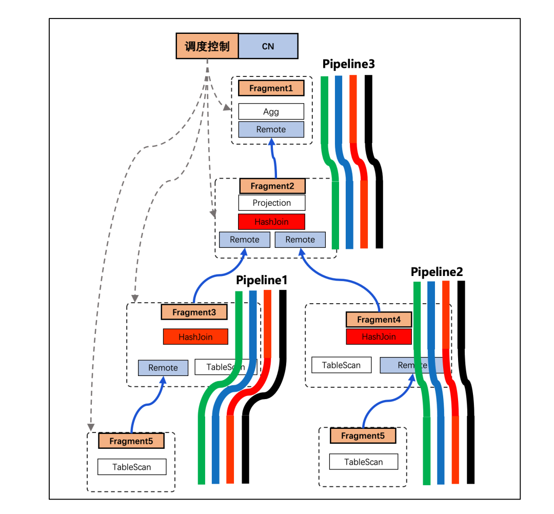该框架彻底去除了并行进程间的阻塞依赖,使得 CPU 利用率提高至95%以上。TDSQL 通过细粒度的任务分解和动态资源调度,确保每个 CPU 核心都能被充分利用。TDSQL 采用了数据并行、任务并行和管道并行等多维并行策略,这些策略协同工作,使得大规模数据处理任务能够以极高的效率执行。