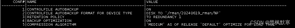 SELECT * FROM V$RMAN_CONFIGURATION;