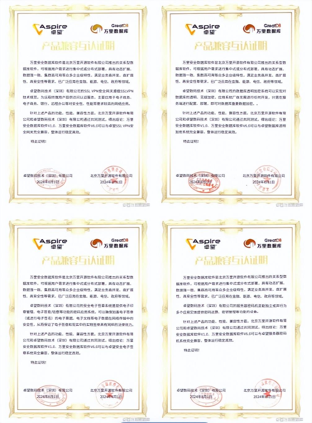 值得一提的是,万里数据库在此期间与卓望数码全栈14款产品完成了兼容适配,涵盖安全电子签单系统、安全网关、数码服务器密码机、密钥管理系统、云服务器密码机、时间戳服务器及透明加密系统等主流安全系列产品。