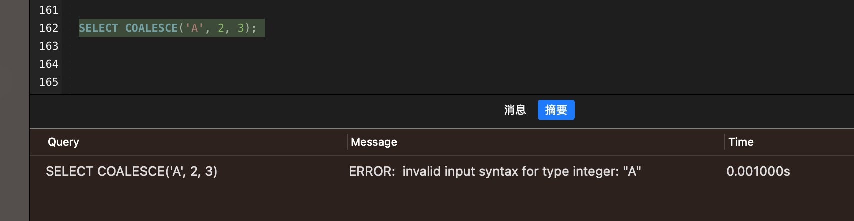 COALESCE 的参数类型不必相同,但它们必须能够相互兼容或者 PostgreSQL 能够自动将它们转换为一种共同的类型。如果参数类型不兼容,PostgreSQL 会尝试进行类型转换,如果转换失败,则抛出错误。例如
