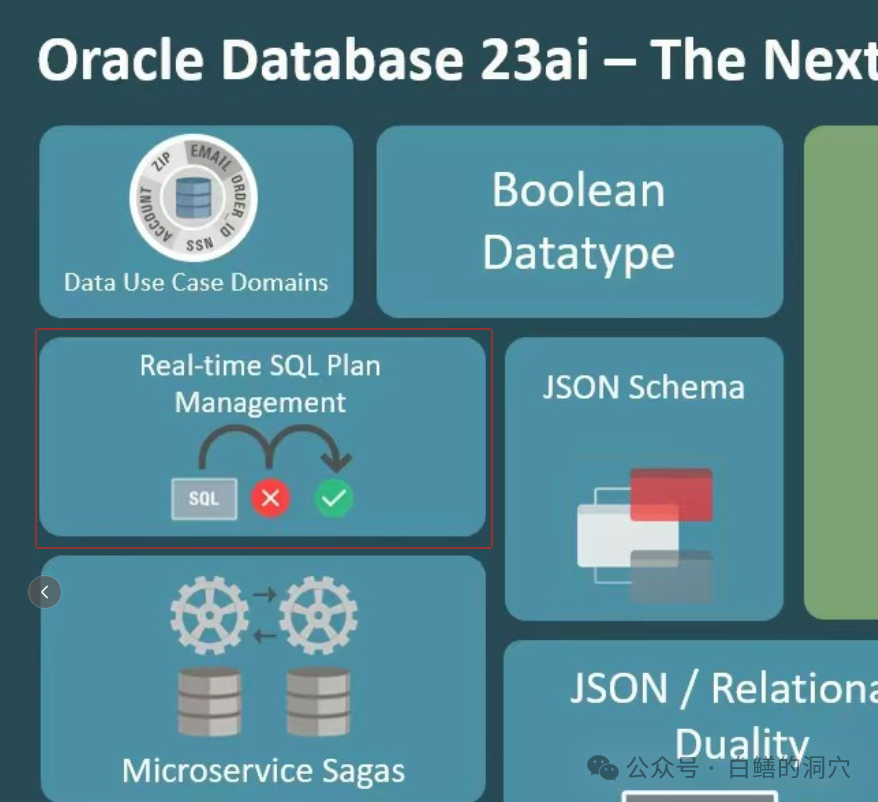 细心的朋友这张23ai的图和去年23c新功能的图相对比,可以看出Oracle 23ai已经完全不同了。