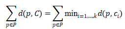 中的点集合P,输出是k点集合C(称为中心),其最小化以下全局函数