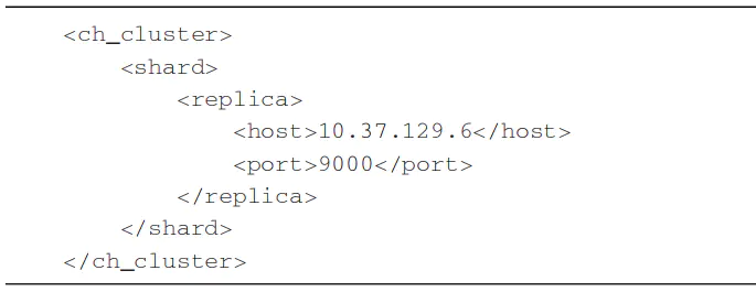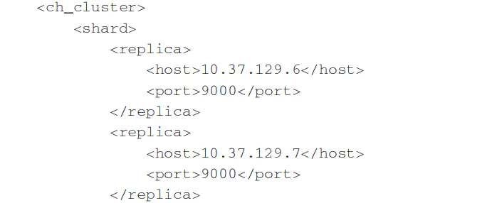代码清单1所示是ClickHouse的一份集群配置示例,从字面含义理解这份配置的语义,可以理解为自定义集群ch_cluster拥有1个shard ( 分片 ) 和1个replica ( 副本 ),且该副本由10.37.129.6服务节点承载。从本质上看,这组1分片、1副本的配置在ClickHouse中只有1个物理副本,所以它正确的语义应该是1分片、0副本。分片更像是逻辑层的分组,在物理存储层面则统一使用副本代表分片和副本。所以真正表示1分片、1副本语义的配置,应该改为1个分片和2个副本,如代码清单2所示。ClickHouse为何如此之快