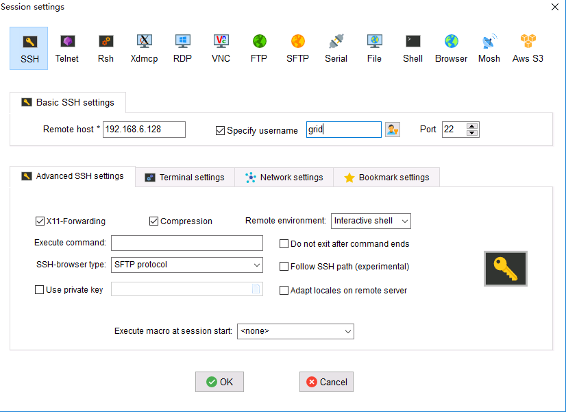 编辑或者新建session,勾选X11-Forwarding