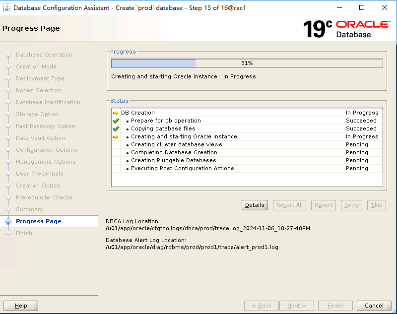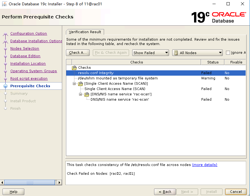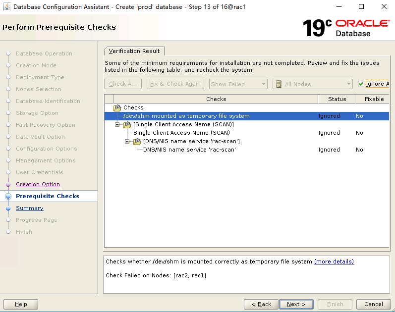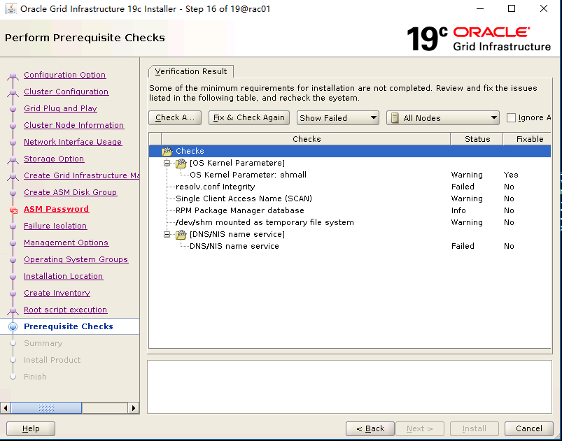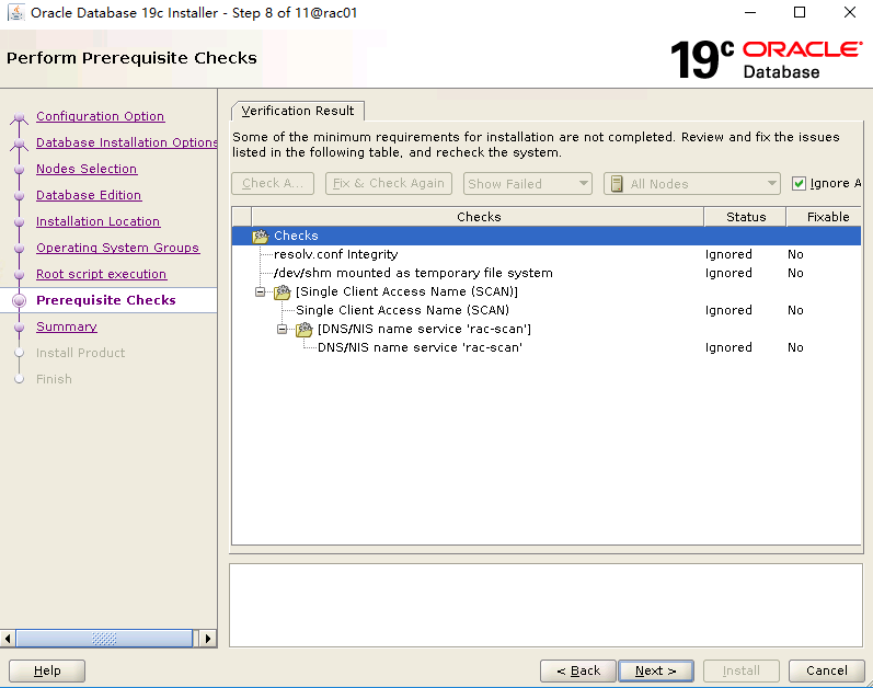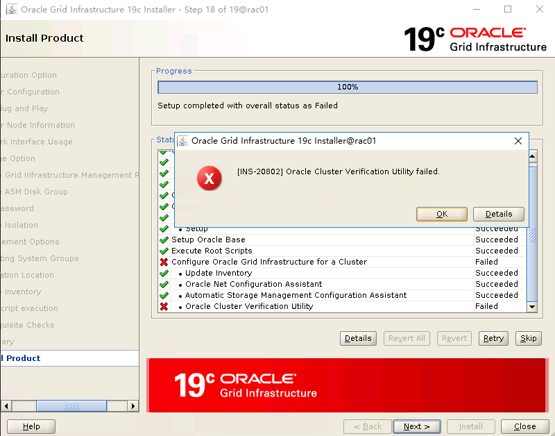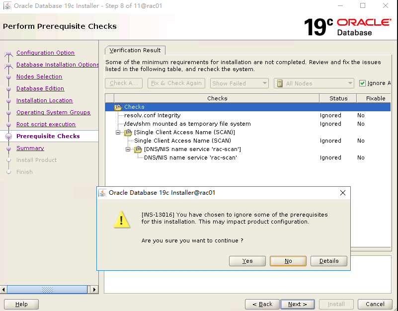 如下警告可以忽略-警告是由于没有使用 DNS 解析造成可忽略,到这里GI已经安装完成,点击ok