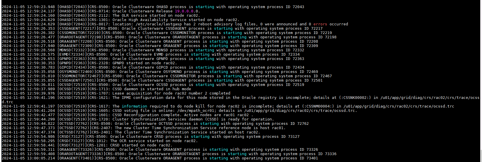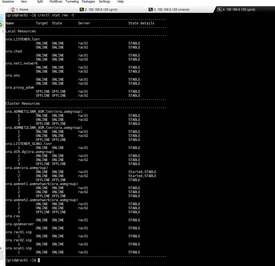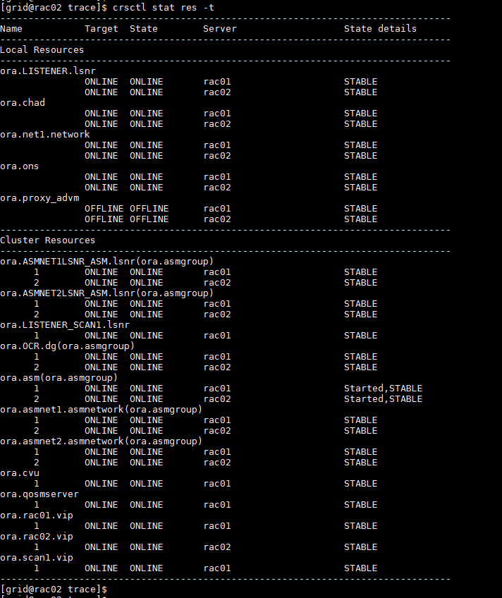 到节点执行 crsctl stat res -t 查询CRS集群状态